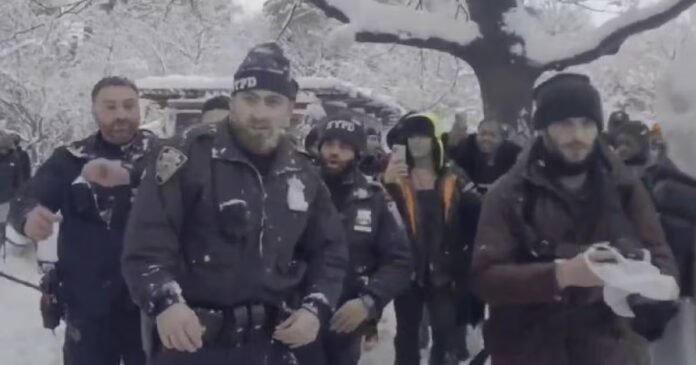Entretanto, as brincadeiras logo se transformaram em conflitos. Vídeos nas redes sociais mostram agentes do Departamento de Polícia de Nova York (NYPD) sendo atacados com bolas de neve no Washington Square Park, em Manhattan. A situação se agravou quando alguns jovens adultos subiram em um prédio nas proximidades, levando a polícia a intervir. Um vídeo da Associated Press captura um policial que derruba um jovem durante a confusão, enquanto outras pessoas acusavam os agentes de serem do ICE, a polícia de imigração.